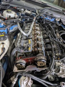 オイルフィルターのべースパッキンとカムカバーパッキンを交換します。